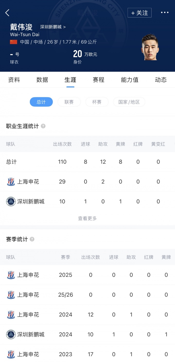 本月4日,深圳新鹏城官宣戴伟浚加盟球队。